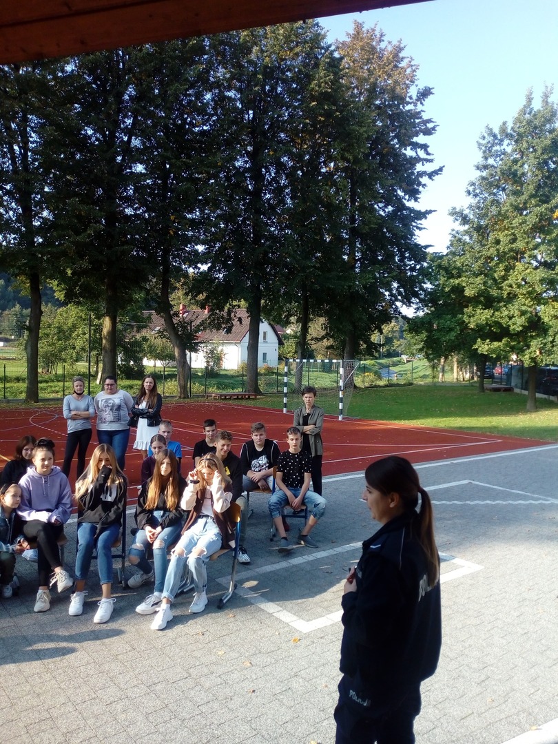 14.09.2021 gościliśmy w szkole policjantów z Komisariatu Policji w Głuchołazach, którzy przeprowadzili pogadankę na temat bezpieczeństwa w ruchu drogowym.