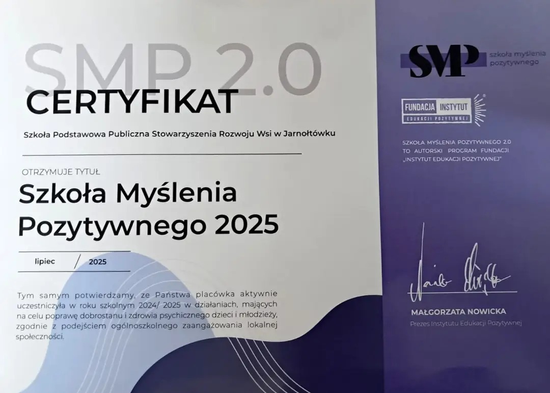 Również w bieżącym roku szkolnym w naszej szkole realizowany będzie program Instytutu Edukacji Pozytywnej.